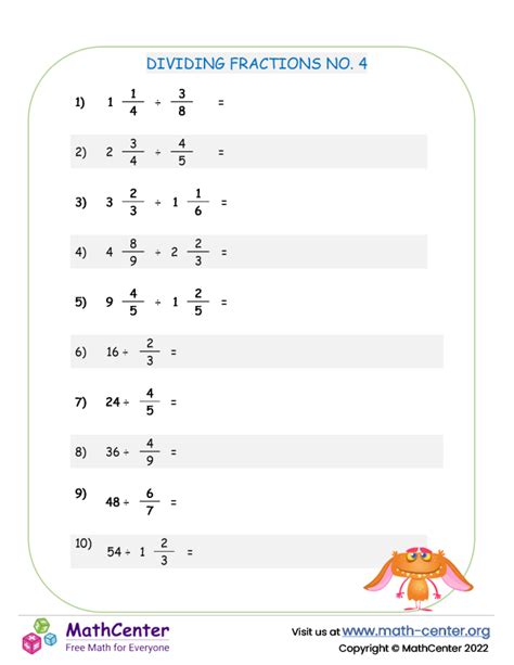 Dividing fractions and mixed numbers practice. This stepwise approach allows students to. Below are six versions of our grade 5 math worksheet on dividing fractions and mixed numbers practice.